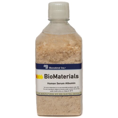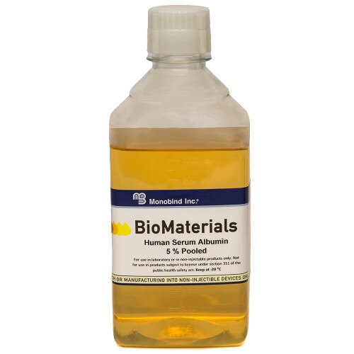 Monobind’s Human Serum Albumin (HSA) and Immune Globulin Intravenous (IGIV) originate from fractionators producing for therapeutic markets, with downgraded materials repurposed through Monobind’s production for the diagnostics field. Our “Made to Spec” BioMaterials serve as reliable, high-quality resources for the world’s leading IVD applications, including diagnostics, molecular assays, and LC-MS/MS. Explore our range of rigorously characterized products and customizable formats, optimized to meet the exacting standards of advanced laboratory use.